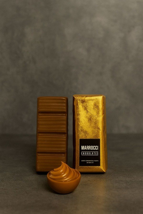 Suave lingote de chocolate con leche, relleno con dulce de leche cremoso.Con un peso de 40 gramos.